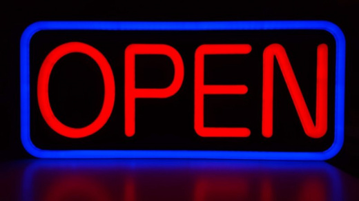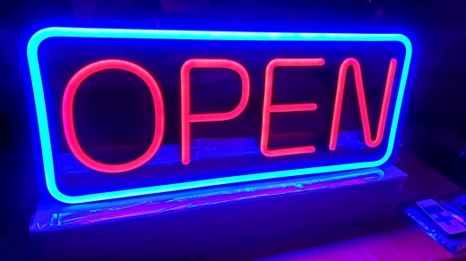 Großes OPEN Sign mit LED Technik. Sieht aus