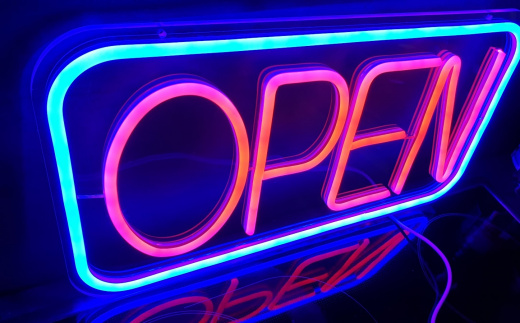 OPEN Sign mit LED Technik, 5V USB Anschluß für den mobilen Einsatz b.B. an einer Powerbank. Sieht aus wie ein