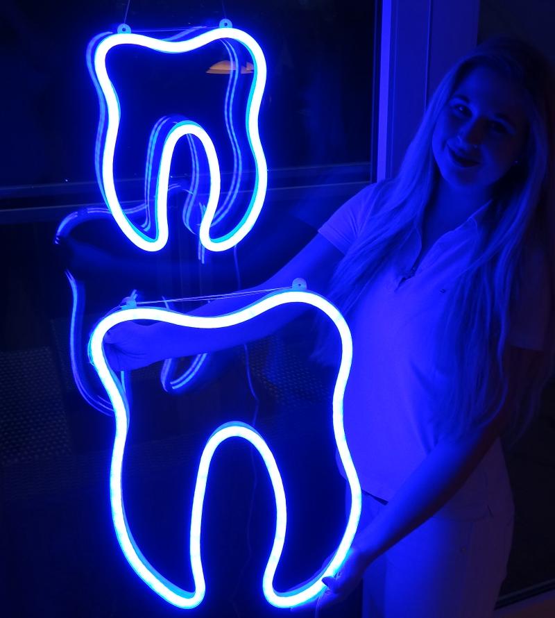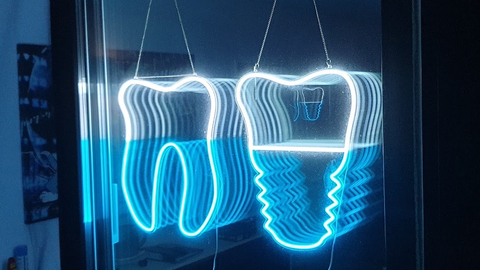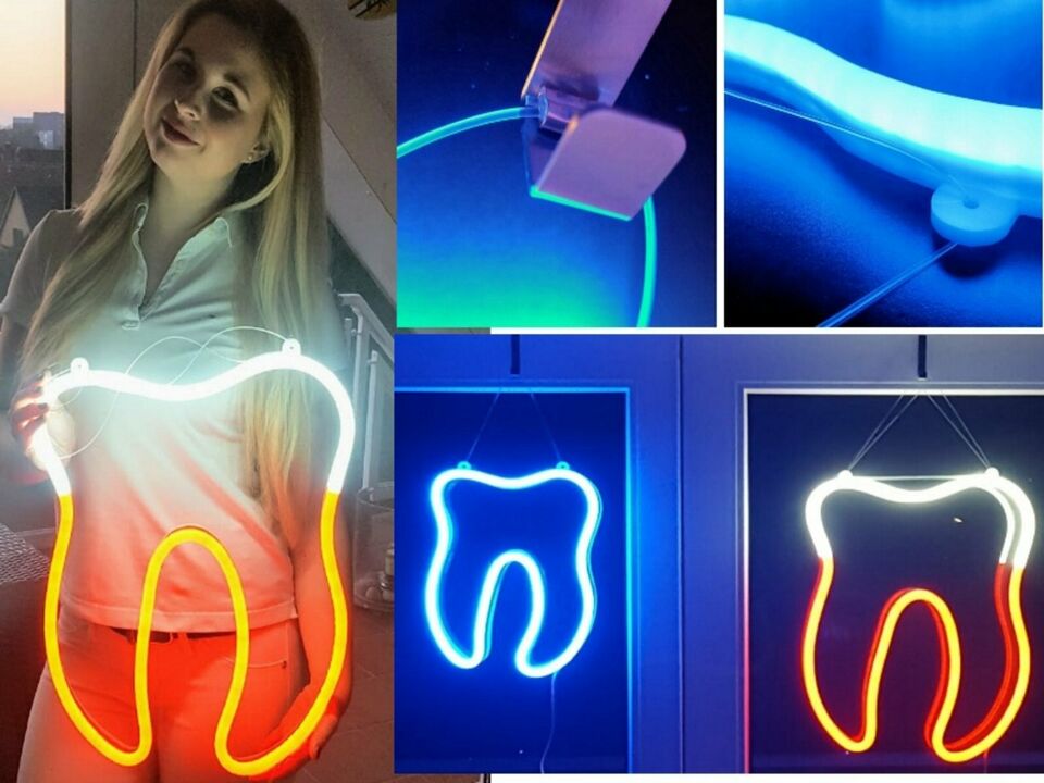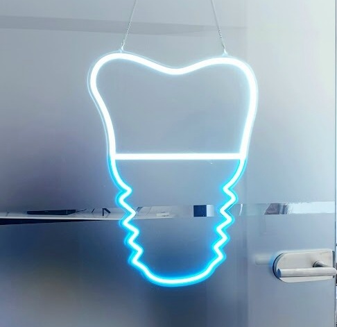 Sie können sich nicht entscheiden? Unsere modernen LED-Leuchtzähne und LED-Zahnimplantat Symbole stehen dem klassischen US-Neon Sign in Nichts mehr nach. Im Gegenteil, die moderne Technologie ist wirtschaftlich und sicherheitstechnisch sogar überlegen.