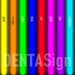 Leuchtfarben: weiß, blau, grün, gelb, orange, rot, lila, pink und hellblau.