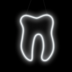 Diese innovative Zahnleuchte wird zum strahlenden Blickfang für jede Zahnarztpraxis! Abmessungen 60 x 43 x 3,5cm (Höhe x Breite x Tiefe). Material Kunststoff mit Hintergrundbeleuchtung und hochglanz Oberfläche oder anderen zur Wahl stehenden Oberflächen, z.B. Alu gebürstet, Edelstahl gebürstet oder kupfer- bzw. goldfarben. Mit High-Power LEDs beleuchtet, nur 10W aber 1000 Lumen hell. 2m Anschlußkabel mit Schalter und Dimmer.