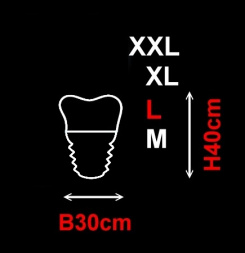 Die Standardgröße beträgt 50 x 38cm (Höhe x Breite) und 15cm Tiefe am Leichtmetallrahmen. Das Leuchtmotiv ist an der breitesten Stelle 40 x 30cm hoch x breit.