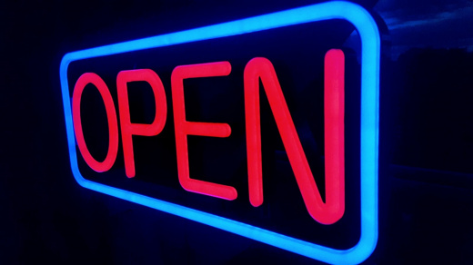 Großes OPEN Sign mit LED Technik. Sieht aus