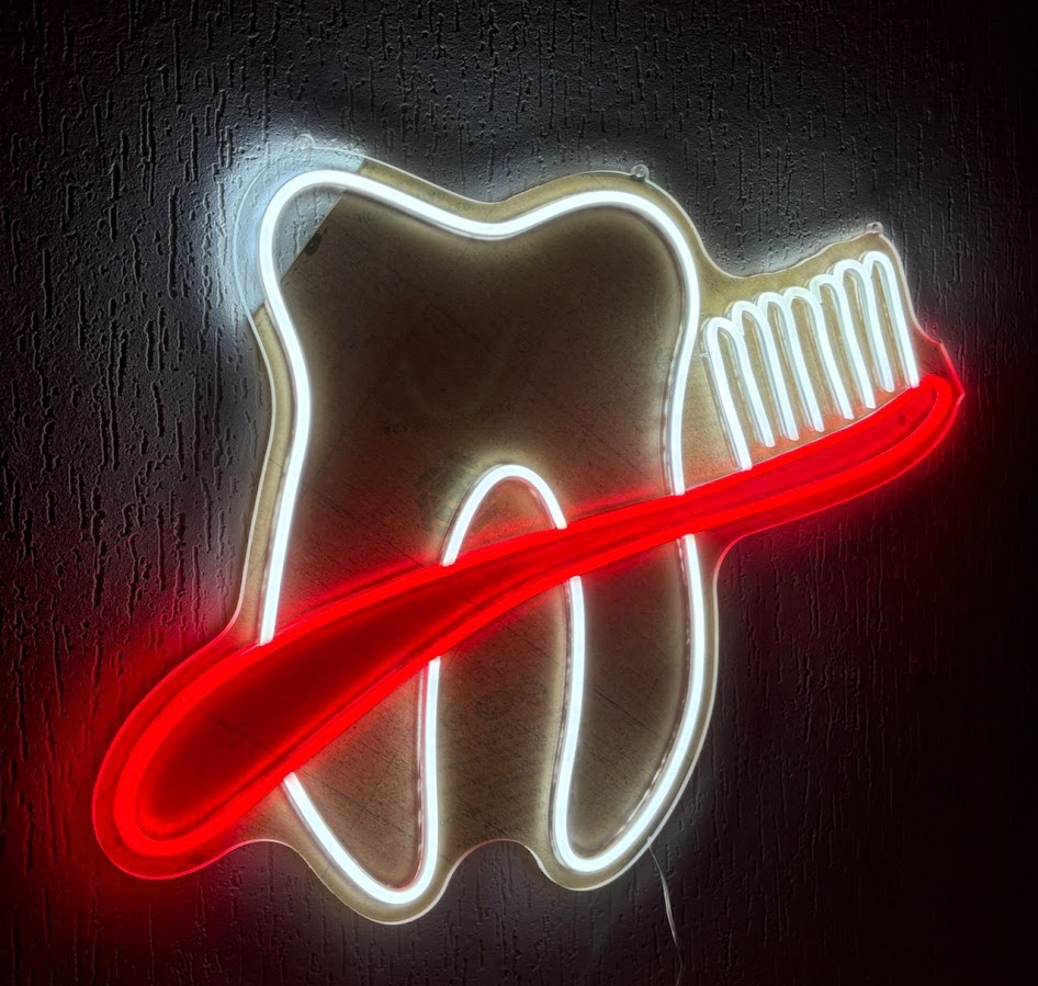 Sie können sich nicht entscheiden? Unsere modernen LED-Leuchtzähne und LED-Zahnimplantat Symbole stehen dem klassischen US-Neon Sign in Nichts mehr nach. Im Gegenteil, die moderne Technologie ist wirtschaftlich und sicherheitstechnisch sogar überlegen.