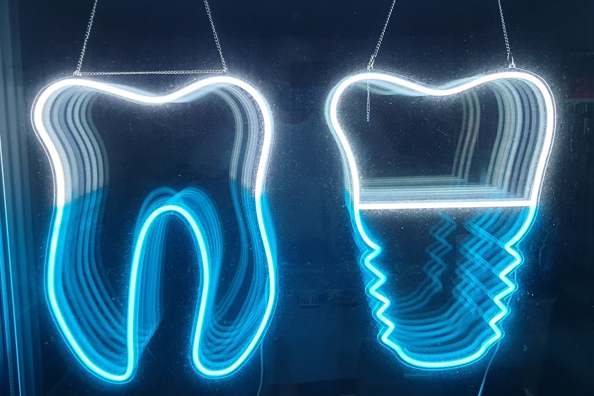 LED Zahnimplantat, zweifarbig, Größe XL (H53 x B38cm)