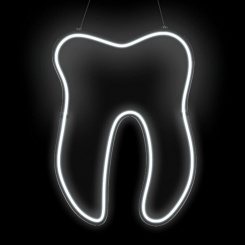 Diese innovative Zahnleuchte wird zum strahlenden Blickfang für jede Zahnarztpraxis! Abmessungen 60 x 43 x 3,5cm (Höhe x Breite x Tiefe). Material Kunststoff mit Hintergrundbeleuchtung und hochglanz Oberfläche oder anderen zur Wahl stehenden Oberflächen, z.B. Alu gebürstet, Edelstahl gebürstet oder kupfer- bzw. goldfarben. Mit High-Power LEDs beleuchtet, nur 10W aber 1000 Lumen hell. 2m Anschlußkabel mit Schalter und Dimmer.