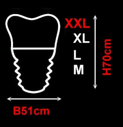 Die Standardgröße beträgt 50 x 38cm (Höhe x Breite) und 15cm Tiefe am Leichtmetallrahmen. Das Leuchtmotiv ist an der breitesten Stelle 40 x 30cm hoch x breit.