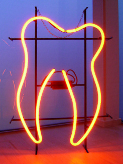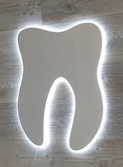 Diese Leuchtzähne sind speziell für Innenräume konzipiert zur Montage an glatten Wänden, zum Beispiel im Empfangsbereich einer Zahnarztpraxis oder im Warteraum.