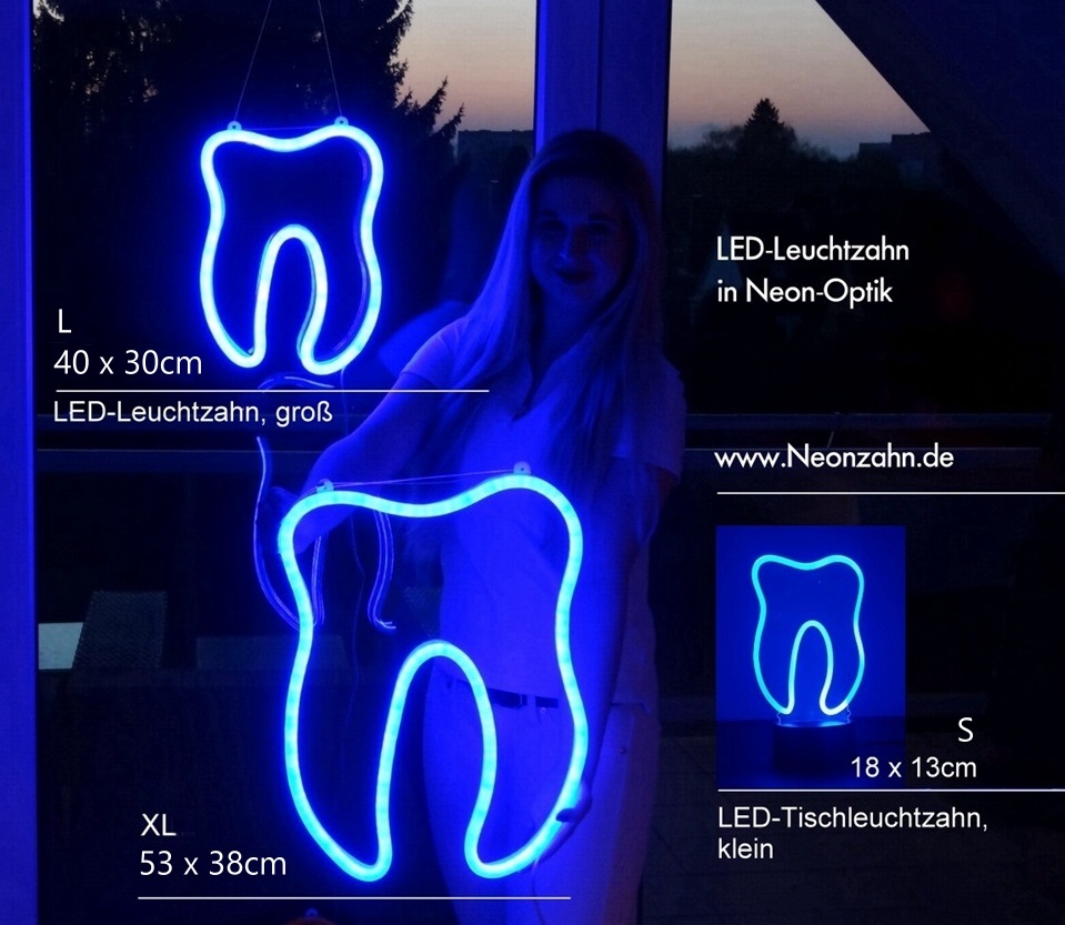 Der Leuchtzahn in Form einer Backenzahn-Silhouette weist Ihren Patienten zielsicher den Weg zur Zahnarztpraxis, besonders in Einkaufszentren und dicht bebauten, unübersichtlichen Geschäfts- und Gewerbegebieten.